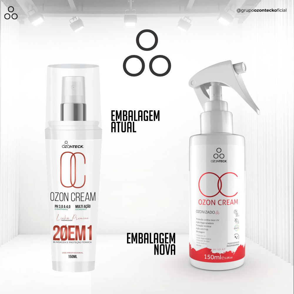 Ozon Cream 20 em 1 hidrata, protege e nutre todos os tipos de cabelo." Cream 20em 1 com Nanotecnologia Ozonizado O "Ozon Cream 20 em 1" é um produto capilar versátil oferecem uma variedade de benefícios para todos os tipos de cabelo. Sua fórmula contém ingredientes antioxidantes, hidratantes, emolientes e protetores térmicos, como extrato de algas marinhas, filtro solar orgânico e vitamina E. Ele é indicado para uso diário e pode ser aplicado em cabelos úmidos ou secos. Os principais benefícios do Ozon Cream 20 em 1 incluem: 1. Hidratação intensa 2. Maciez 3. Brilho intenso 4. Redução de volume 5. Maior penteabilidade 6. Controle de frizz 7. Controle antiumidade 8. Ação regeneradora 9. Nutrição revitalizante 10. Proteção térmica 11. Filtro solar 12. Força e resistência 13. Nutrição da fibra capilar 14. Sela a cutícula 15. Prevenção de pontas duplas 16. Desembaraço dos fios 17. Aceleração da secagem 18. Alinhamento dos fios 19. Aumento da durabilidade da escova 20. Reparo de danos Para utilizar, basta aplicar o produto nos cabelos úmidos ou secos, distribuindo-o uniformemente por toda a extensão dos fios. Não é necessário enxaguar. Penteie como de costume ou finalize conforme desejado. Precauções: • Evite contato com os olhos. • Mantenha fora do alcance das crianças. • Faça um teste de alergia antes do primeiro uso. • Armazene em local fresco e seco, longe da luz solar direta. • Siga as instruções de uso. • Uso externo